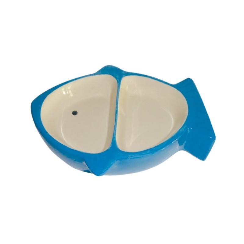 №1 Миска керамическая двойная в форме рыбы – это идеальное решение для кормления кошек. Миска изготовлена из керамики, что делает ее прочной, долговечной и гигиеничной.