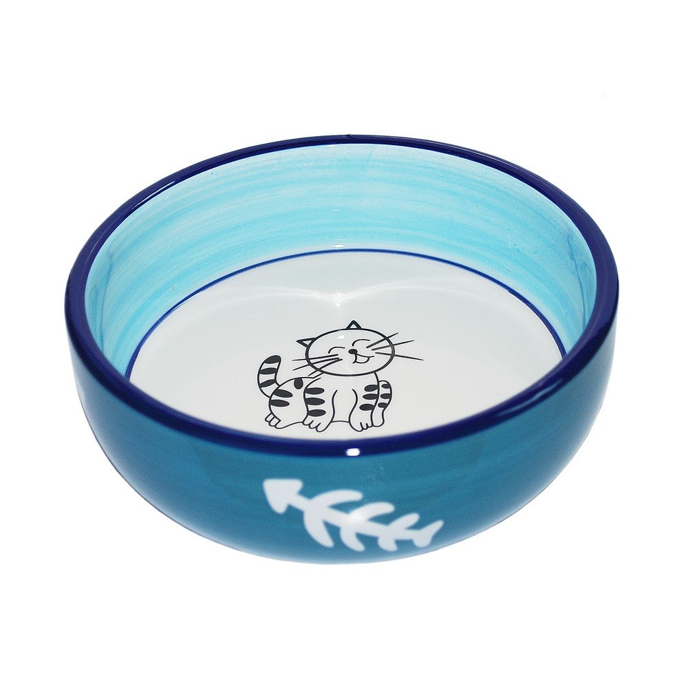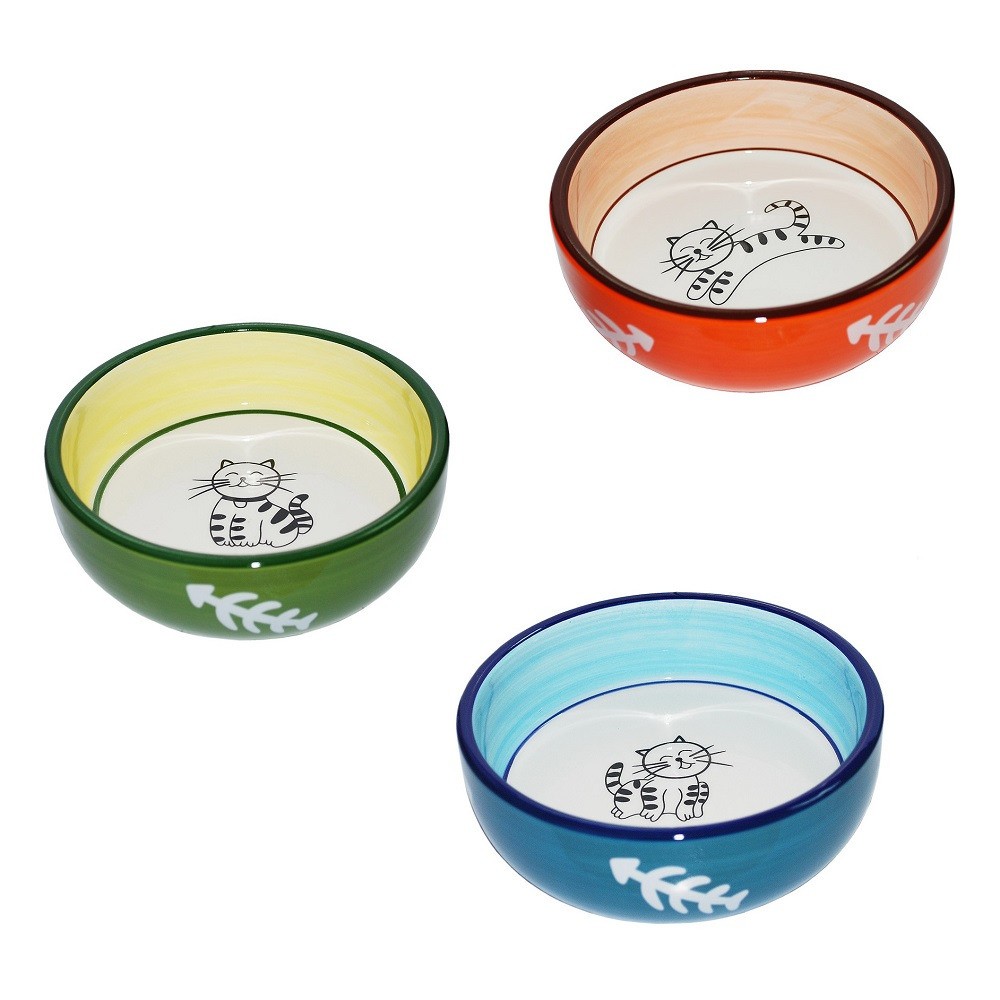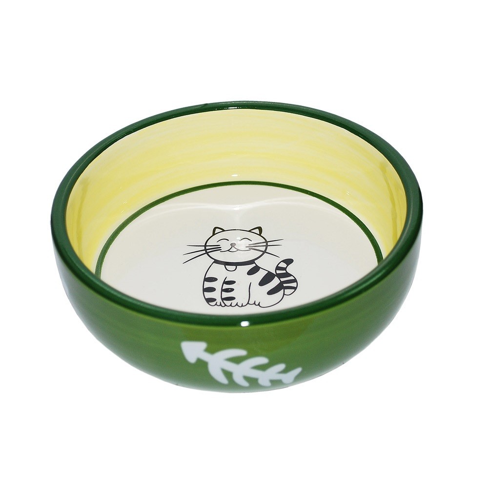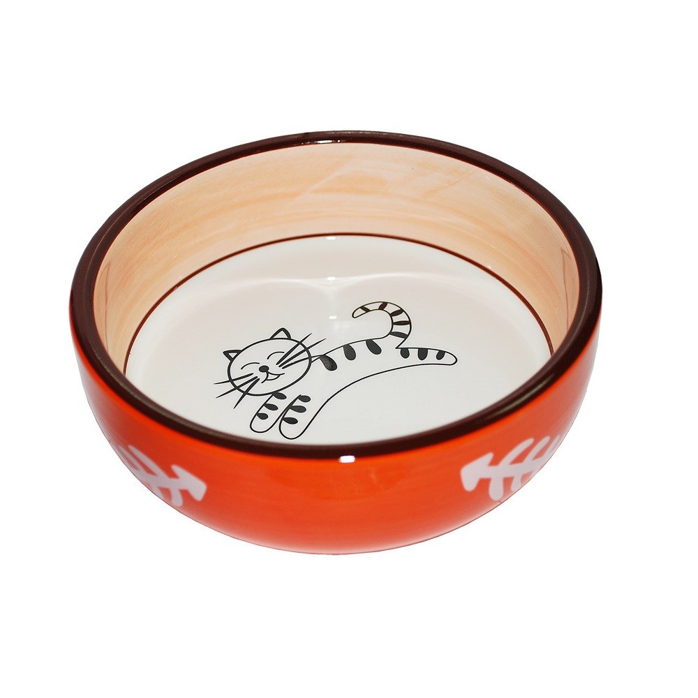 №1 Миска керамическая, роспись, рисунок «кошка», косточки — создана для комфортного и стильного питания вашего питомца.