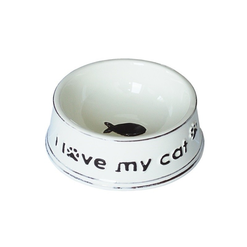 №1 Керамическая миска стилизованная под старину с надписью «I love my cat» — отличный выбор для владельцев кошек, которые хотят добавить эстетичный элемент в интерьер и сделать кормление питомцев