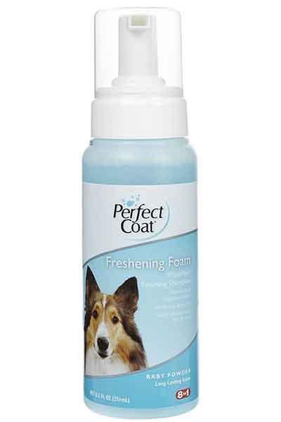 8in1 PC Freshening Foam — это шампунь-пенка, не требующий смывания. Он идеально подходит пожилым, травмированным животным, а также собакам, которых сложно помыть.