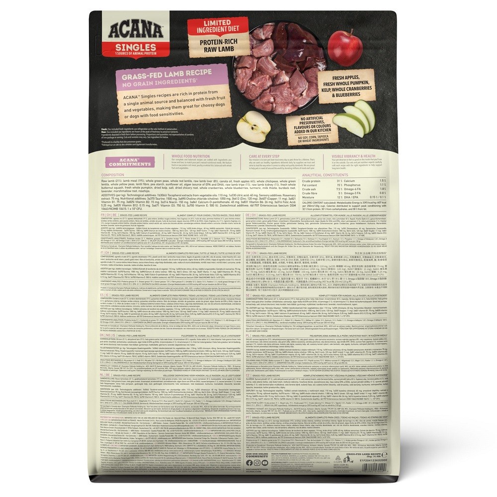 Acana Grass-Fed Lamb (50/50) — беззерновой сбалансированный корм для взрослых собак и щенков. Биологически соответствующий гипоаллергенный сухой корм для собак с чувствительным пищеварением.
