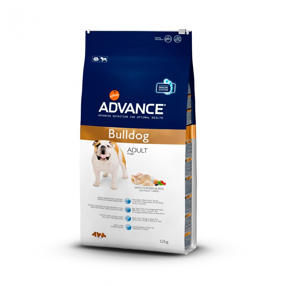 Advance Dog Bulldog — это высококачественный полнорационный корм специально разработан для обеспечения пищевых потребностей собак породы Английский бульдог с первого года жизни.