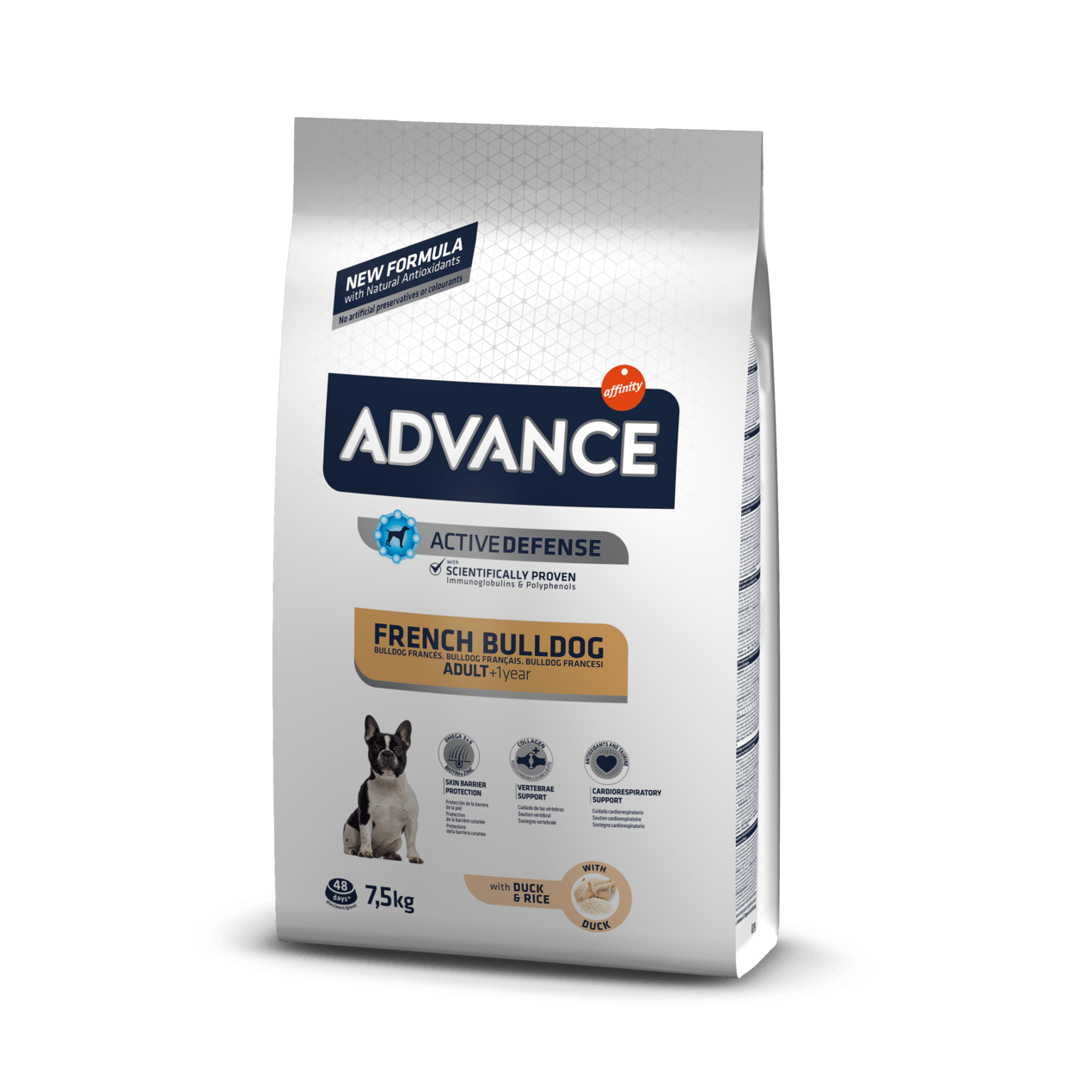 Advance Dog French Bulldog — это высококачественный сбалансированный полнорационный корм специально разработан для обеспечения пищевых потребностей собак породы Французский бульдог с первого