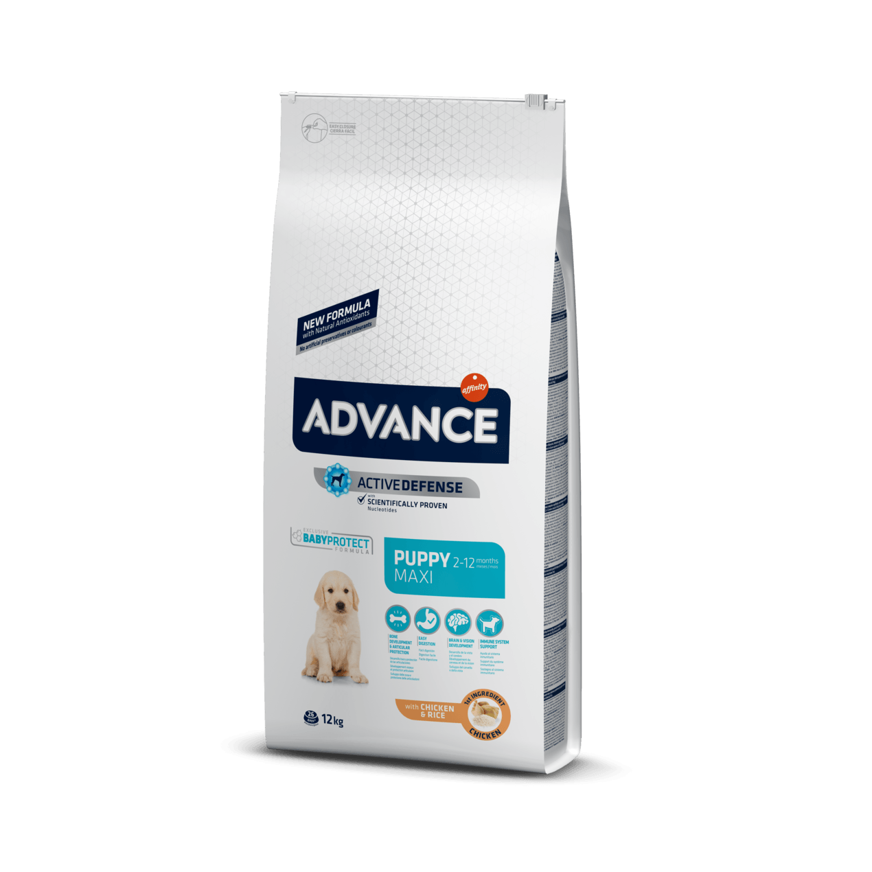 Advance Dog Puppy Protect Maxi — это высококачественный сбалансированный полнорационный корм для щенков (в возрасте от 2 -12 месяцев) крупных пород (вес взрослых животных более 30 кг).