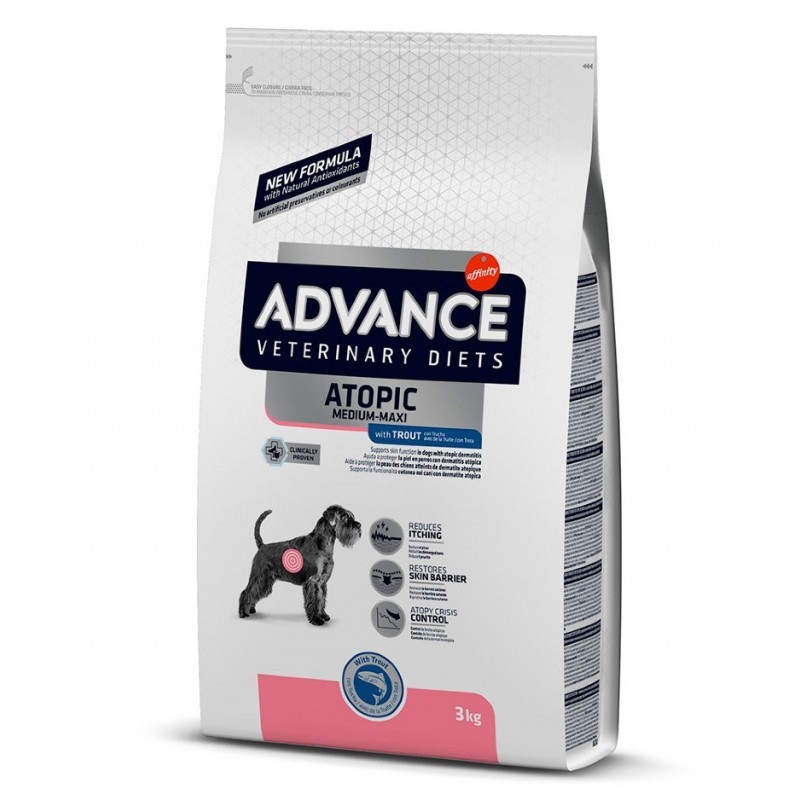 Advance VetDiet Atopic Medium/Maxi — это полный и сбалансированный диетический продукт для собак средних и крупных пород, составленный для ухода за кожей вашей собаки, если она имеет дерматит
