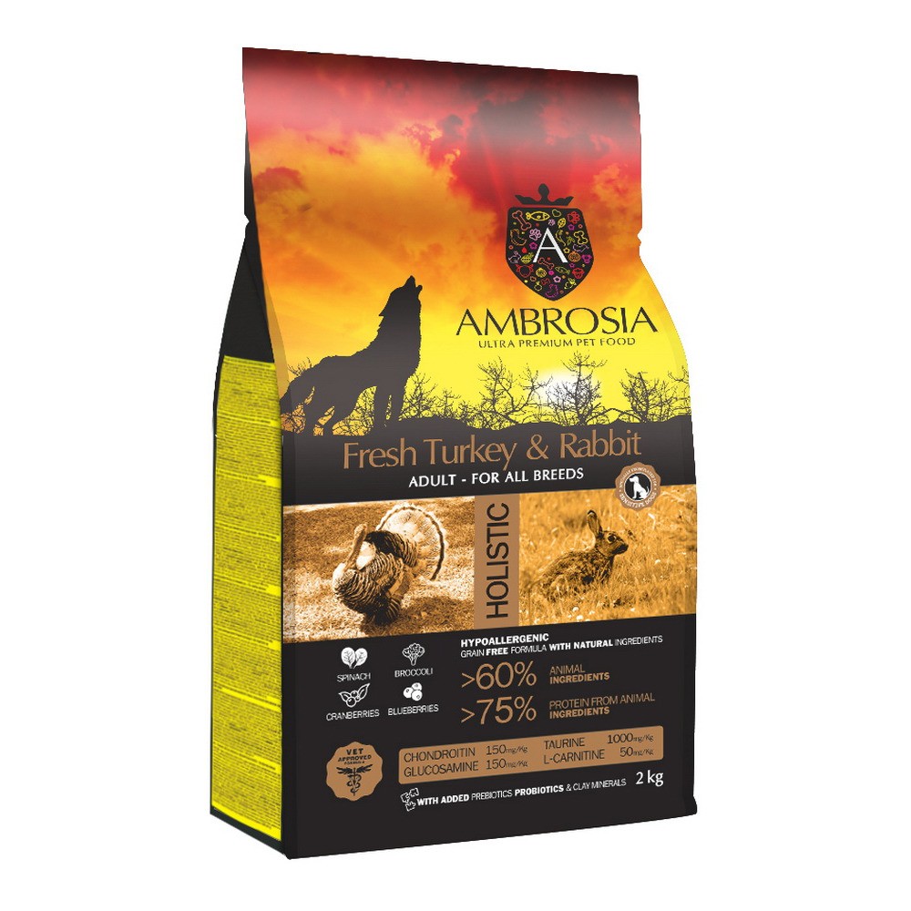 Ambrosia Fresh Turkey & Rabbit — это превосходный беззерновой корм, предлагающий оптимальное питание для собак всех пород. Представляет собой уникальную смесь белков, полученных из свежего