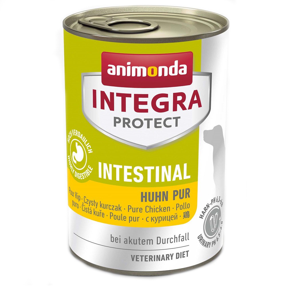 Animonda Integra Protect Intestinal Pure Chicken — легкоусвояемый специальный диетический корм с курицей для собак с диареей.