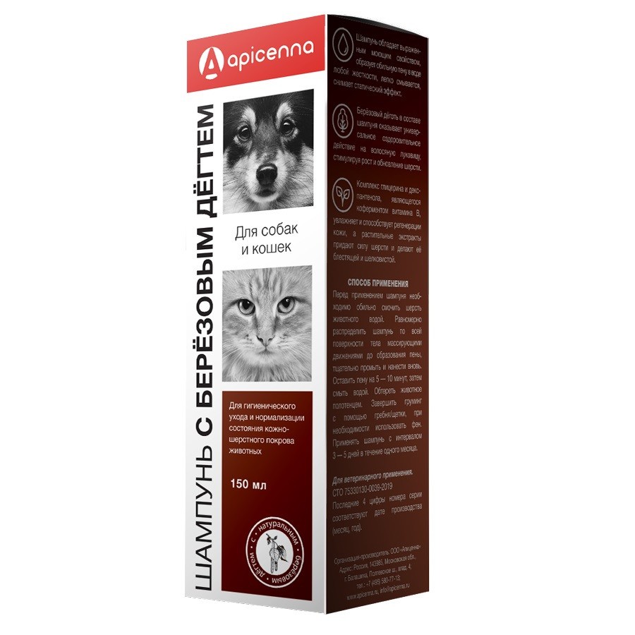 Главная Собаки Косметика и средства по уходу Apicenna Шампунь с березовым дегтем, 150 мл