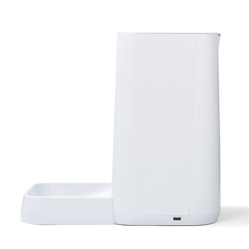 Кормушка вмещает около 3-х кг сухого корма и позволяет настроить индивидуальный план кормления питомца: от времени выдачи до размеров порции, и контролировать его через специальное приложение в
