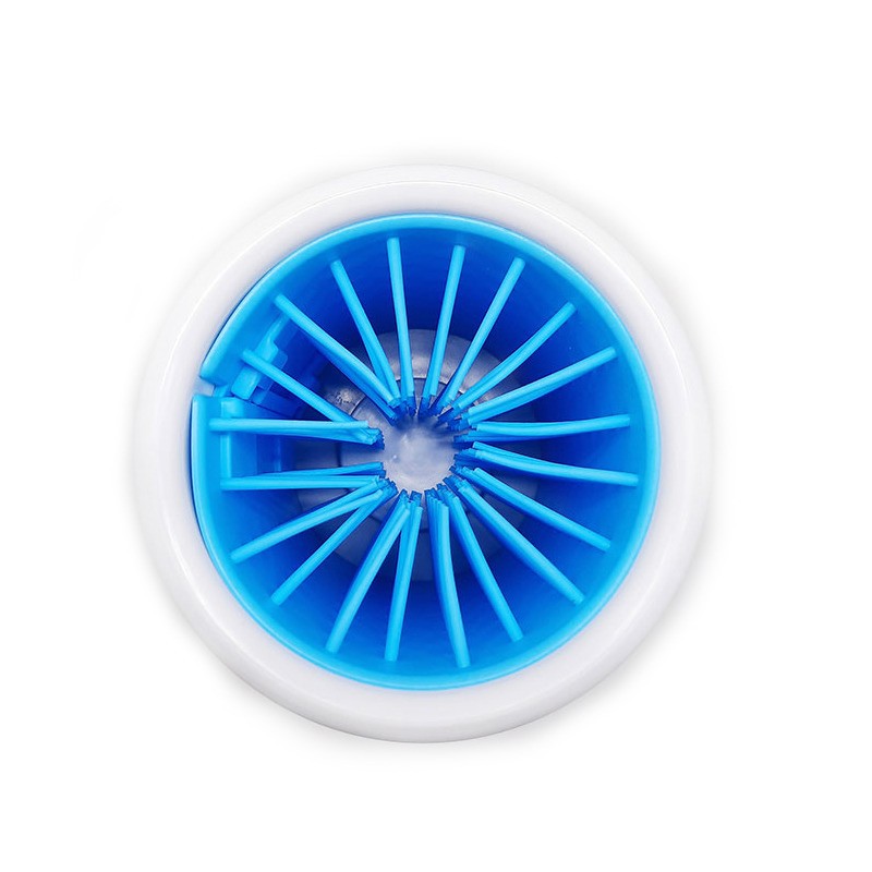 Лапомойка состоит из пластмассового стакана, в который вставляется щётка с силиконовыми ворсинками. Добавьте в воду каплю шампуня или мыльного раствора, а после процедуры насухо вытрите собаке