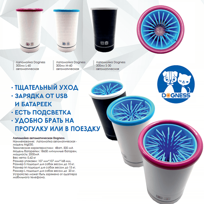 Портативная лапомойка Dogness для кошек и собак любых пород – это самый лёгкий способ избежать грязи после прогулки.