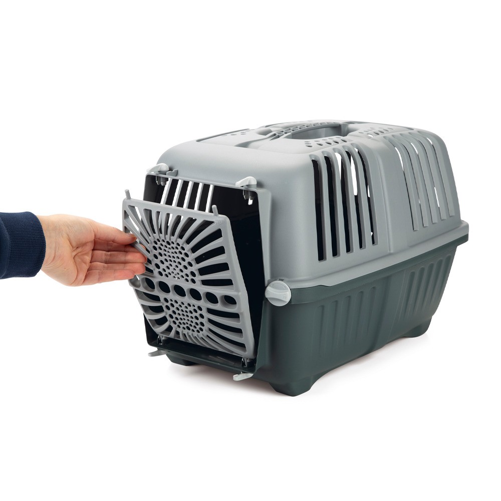 Верхняя часть имеет боковые зажимы, которые облегчают снятие крышки. Вы можете поместить вашего питомца внутрь через верх или использовать маленькую дверь на передней панели.