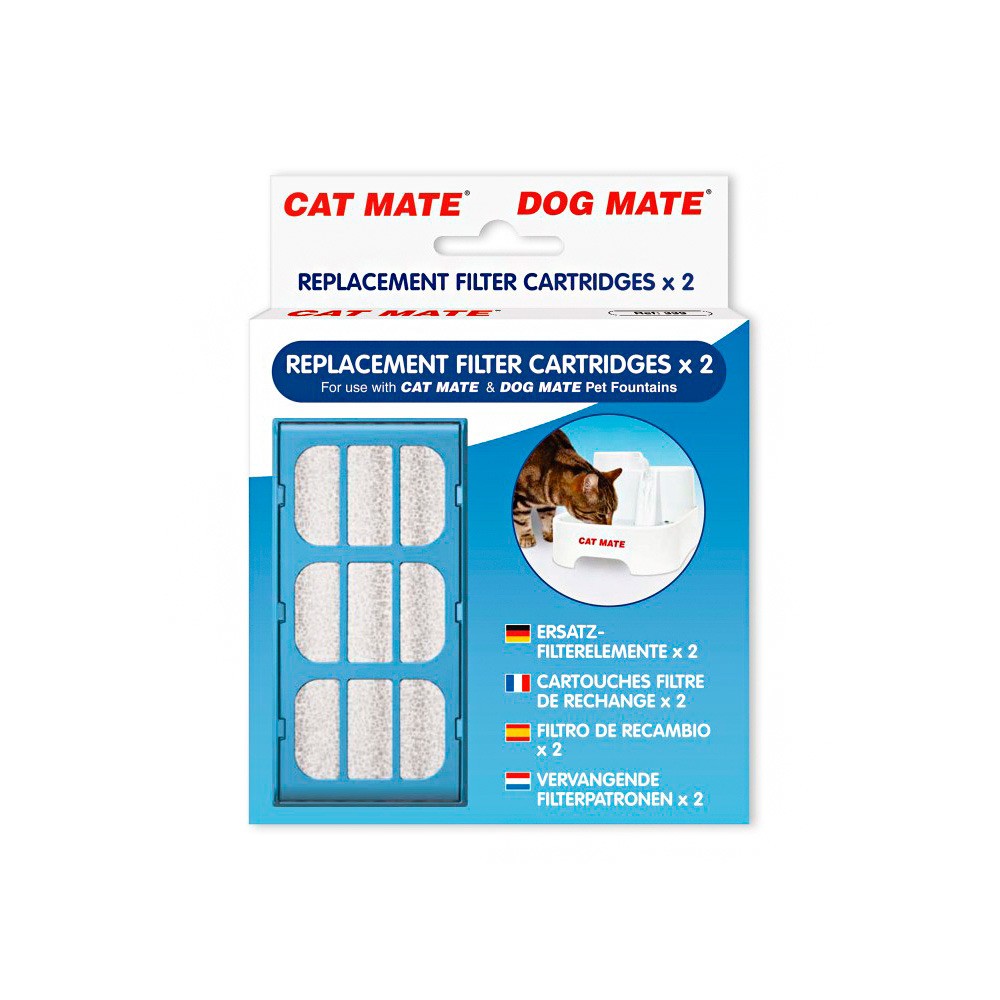 В комплекте 2 фильтрующих картриджа из угольного полимера, которые можно использовать в фонтанах Cat Mate.