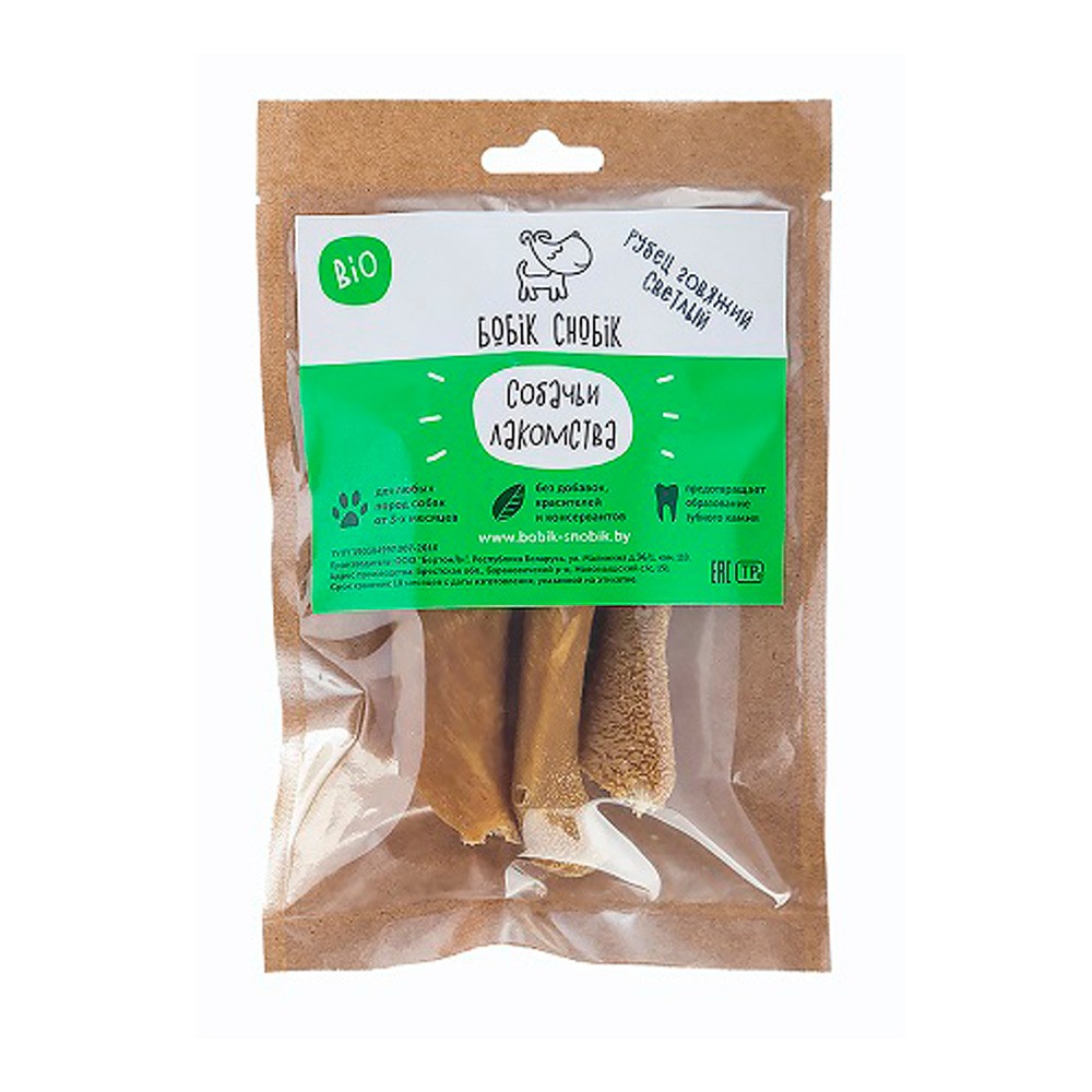 Высушенный рубец сохраняет все полезные витамины и минералы, необходимые для хорошего самочувствия и отличного настроения собаки. Ворсистость рубца способствует: очищению зубов от зубных камней;