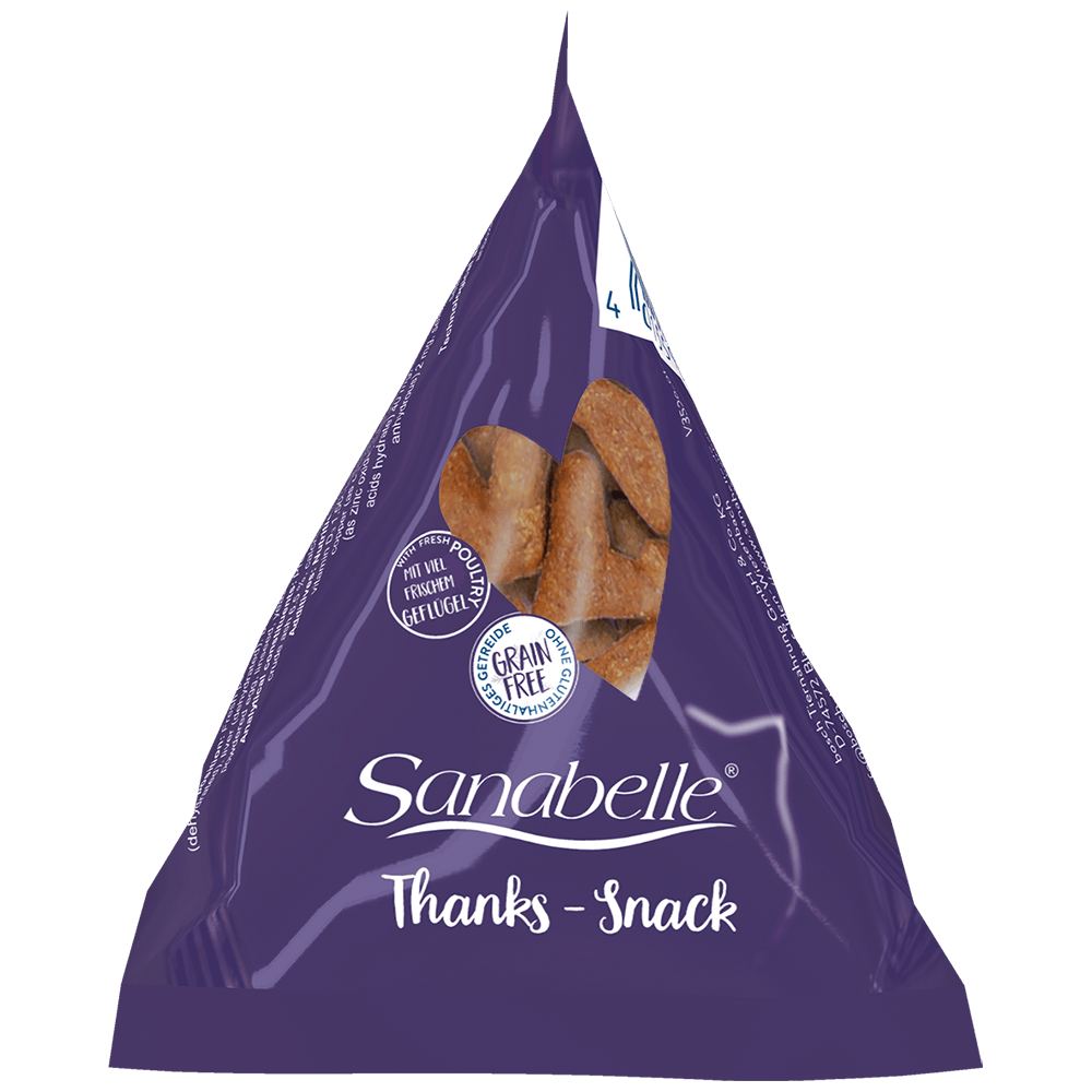 Лакомство для кошек Бош Санабелль Сенкс содержит мясо домашней птицы, из-за чего обладает множеством полезных свойств. Оно помогает поддерживать нормальный вес из-за минимума жиров, содержащихся в