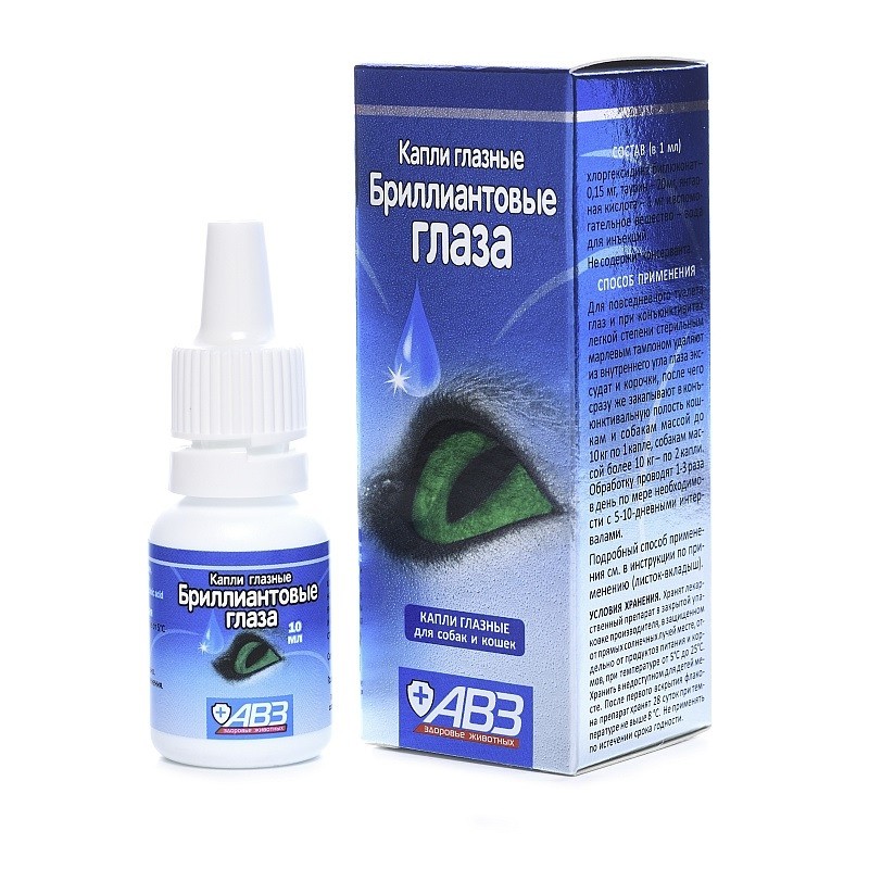 АВЗ Брилиантовые глаза – глазные капли для лечения и профилактики офтальмологических заболеваний у собак и кошек.