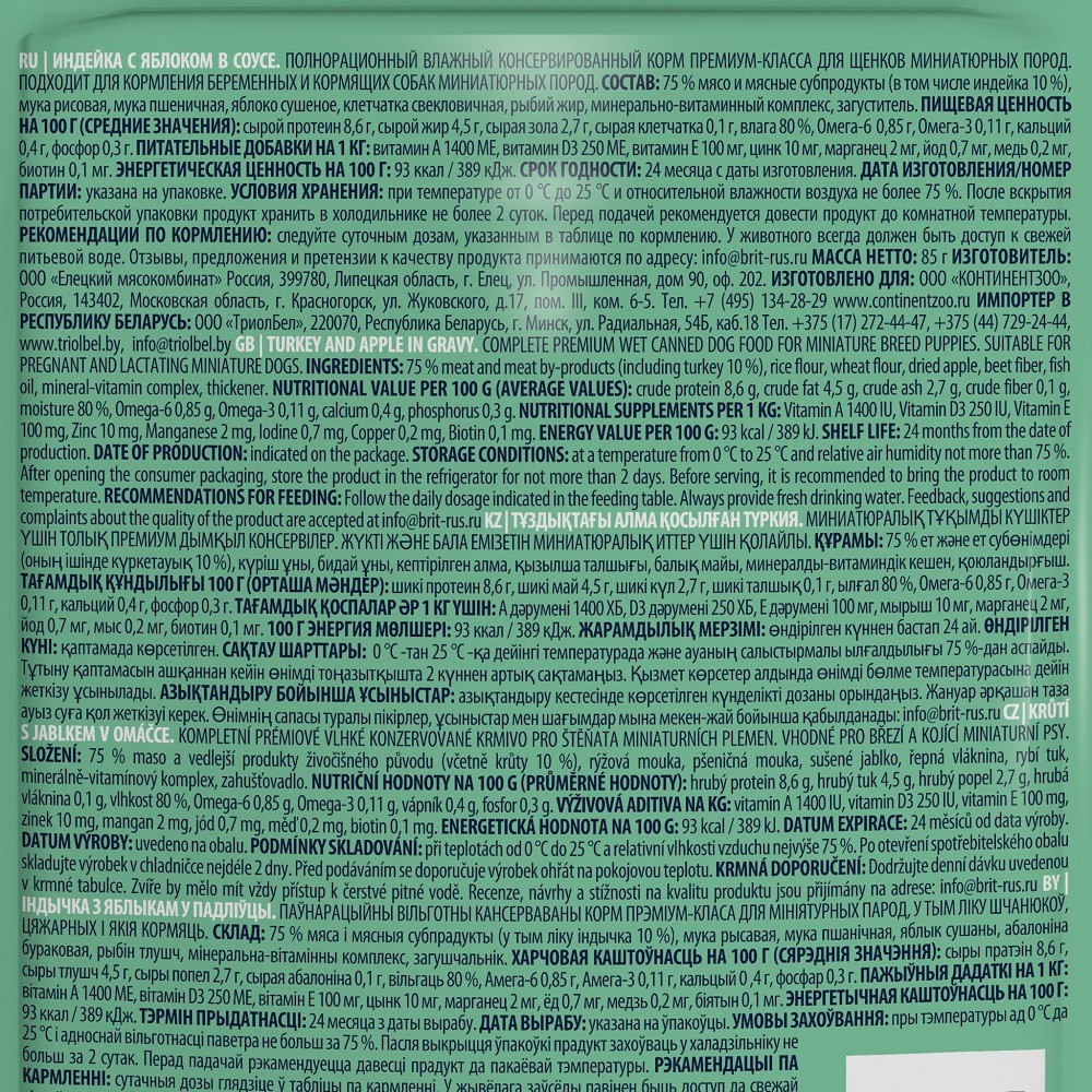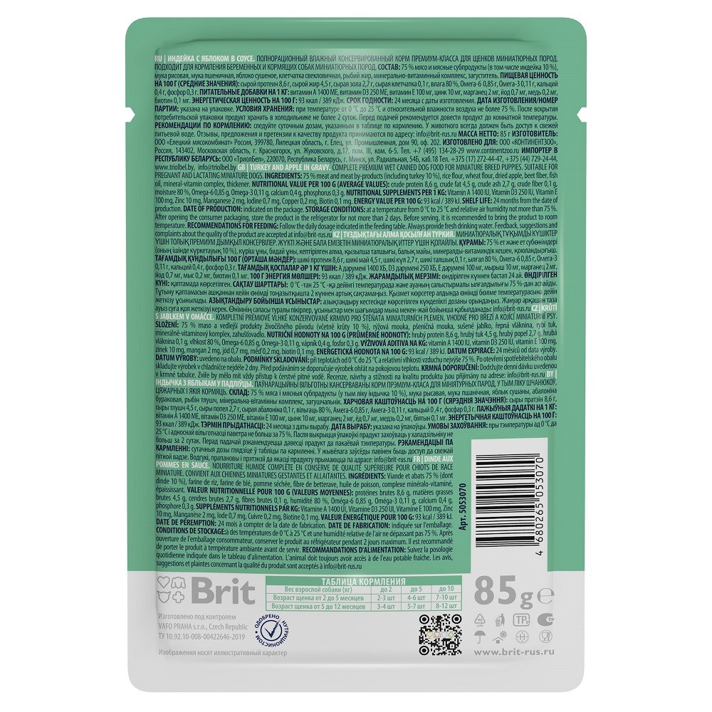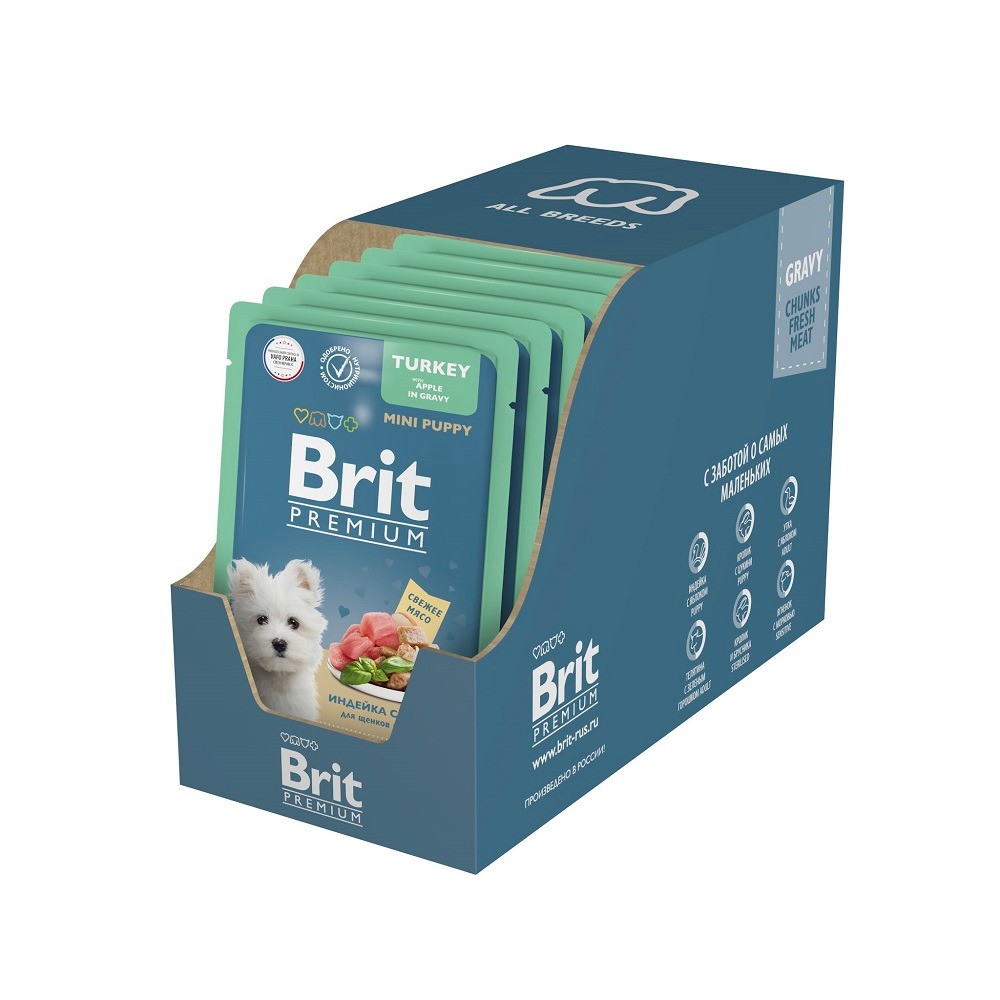 Brit Premium Пауч с индейкой с яблоком в соусе для щенков мини пород — нежные кусочки мяса в ароматном соусе — идеальное сочетание для полноценного и сбалансированного рациона. Паучи Brit Premium