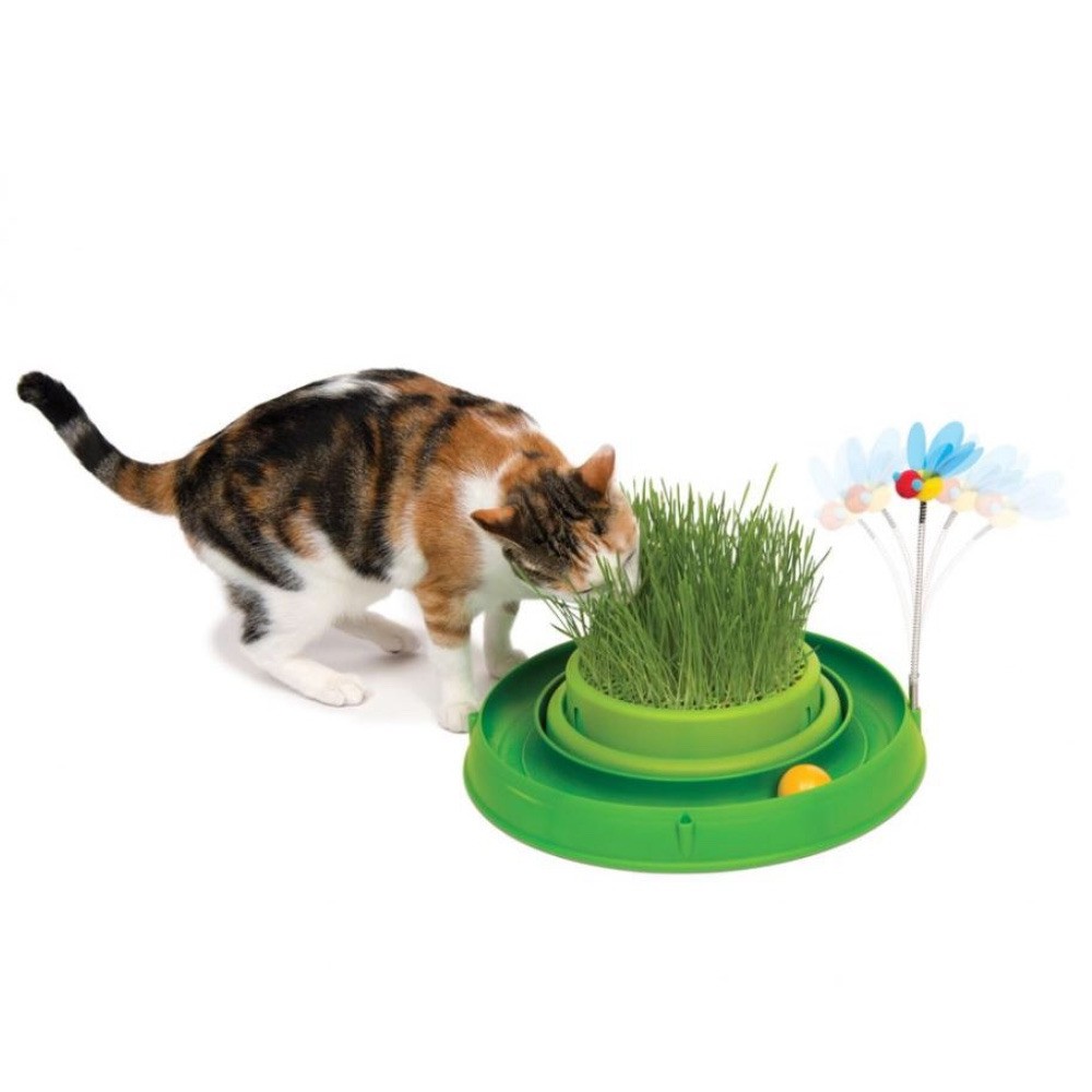 Catit игровой круг с мини-садом и травой — это игровой комплекс, совмещающий трек с шариком и сад для выращивания свежей молодой травки.