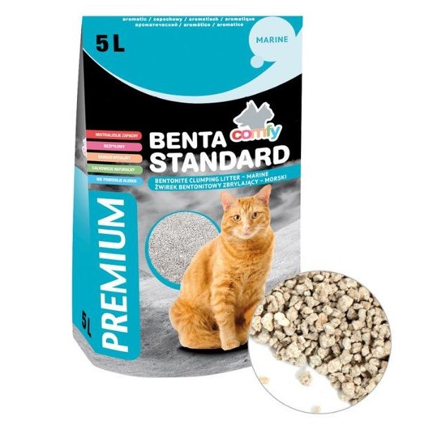 Comfy Benta Standard Marine — это комкующийся бентонитовый наполнитель для кошек. При производстве наполнителя используются только натуральные компоненты — бентонитовые глины. Намокая,