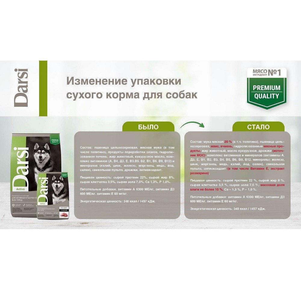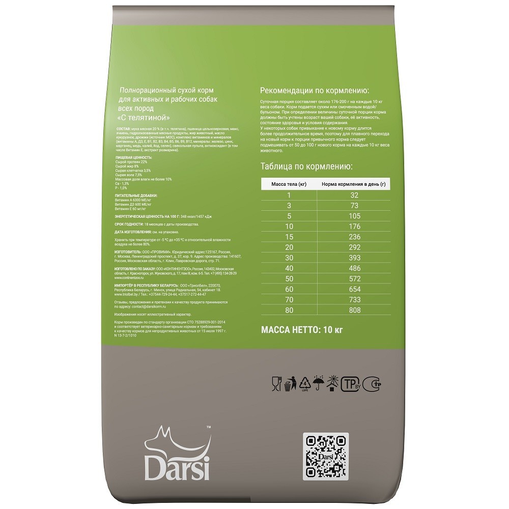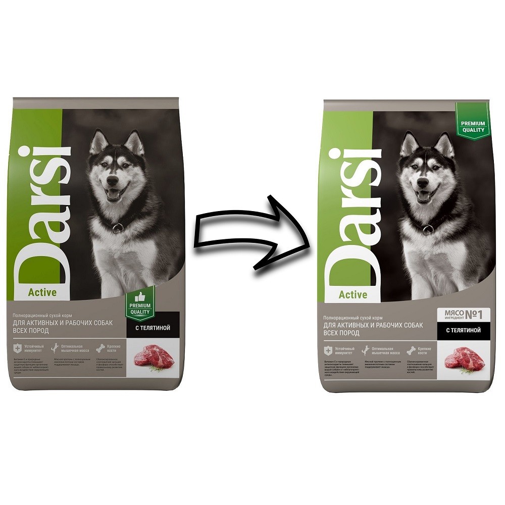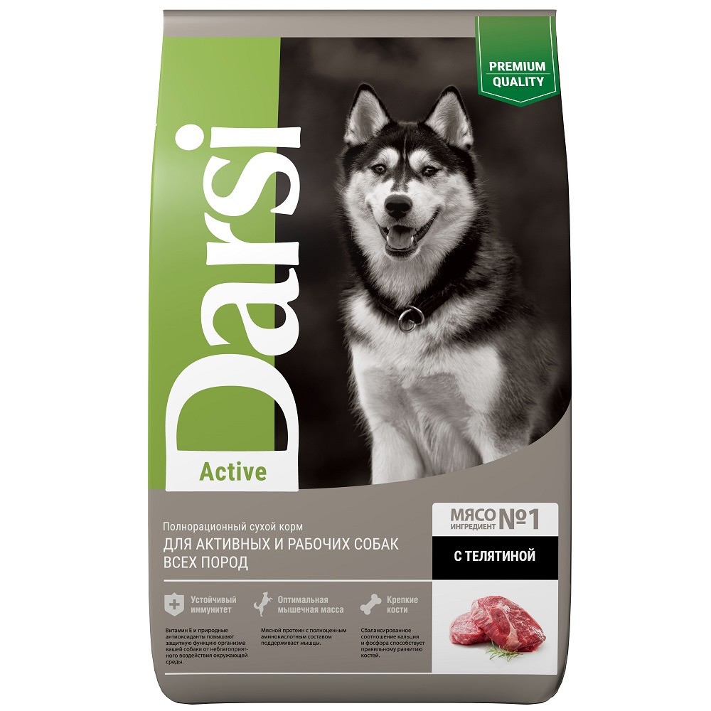 Darsi Active — полнорационный сухой корм для активных и рабочих собак всех пород с телятиной.