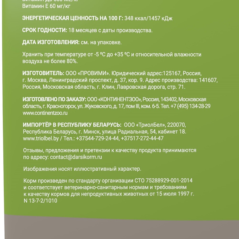 Производитель (завод): ООО «Провими», 141600, Россия, Московская область, г. Клин, Лавровская дорога, строение 71