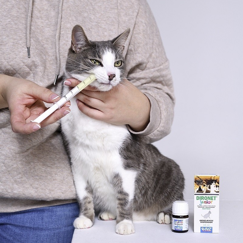 Диронет Джуниор применяют щенкам, котятам, а также взрослым собакам и кошкам индивидуально перорально (внутрь), однократно в утреннее кормление с небольшим количеством корма или с помощью
