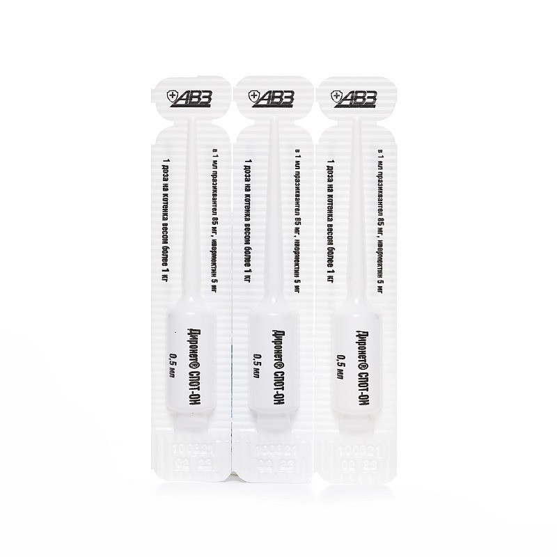 «Диронет Спот-Он» запрещается применять щенкам и котятам моложе 2-месячного возраста, беременным, кормящим, больным инфекционными болезнями и выздоравливающим животным.