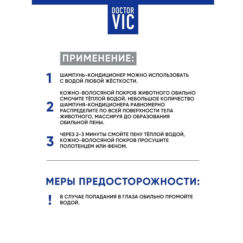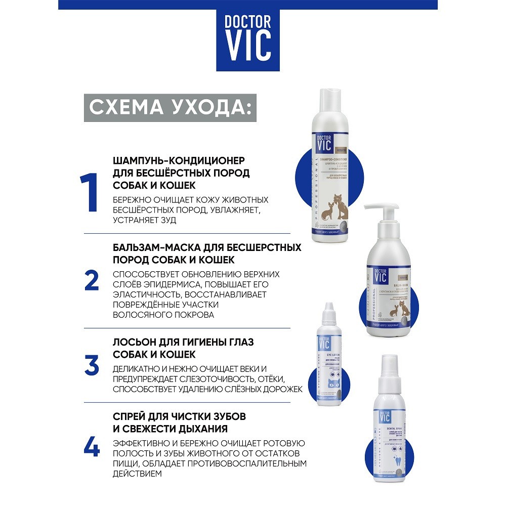 DOCTOR VIC Шампунь-кондиционер для бесшерстных кошек и собак, 250 мл