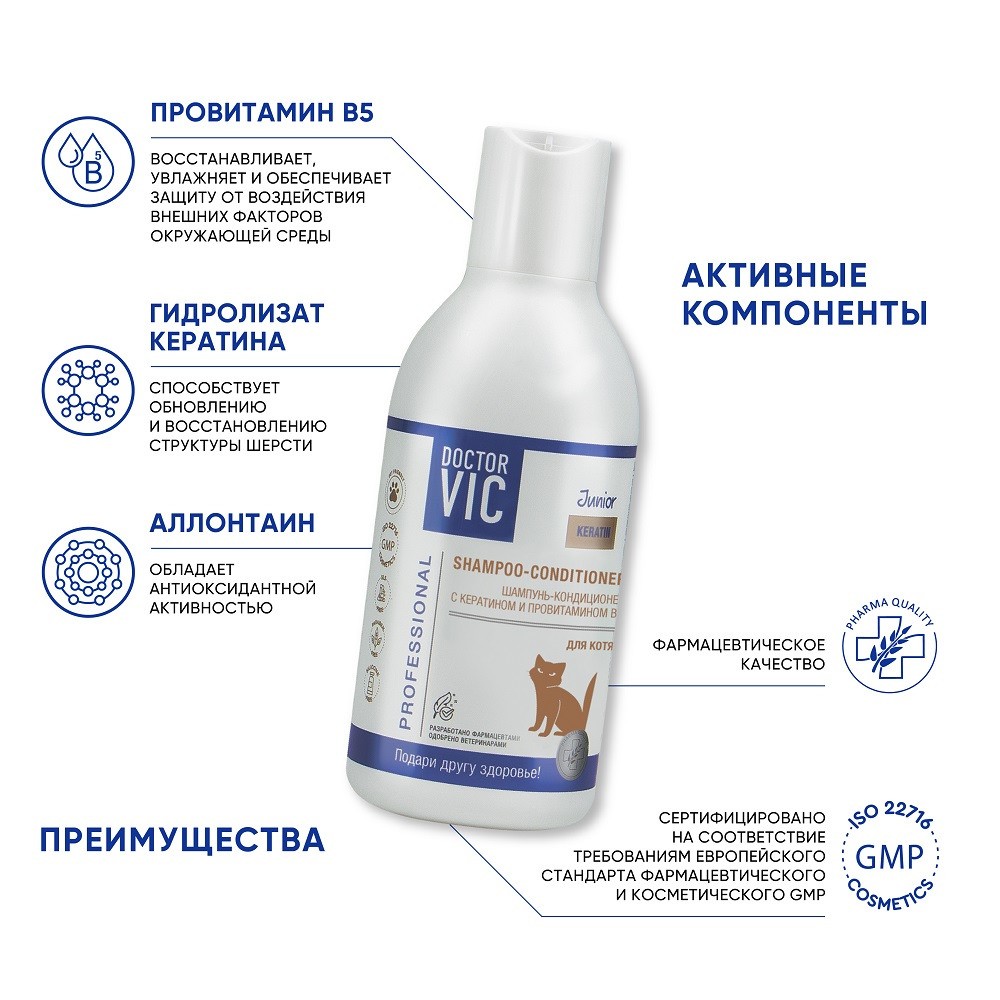 DOCTOR VIC Шампунь – кондиционер с кератином и провитамином B5 для котят — экспертная забота о красоте и здоровье вашего питомца.