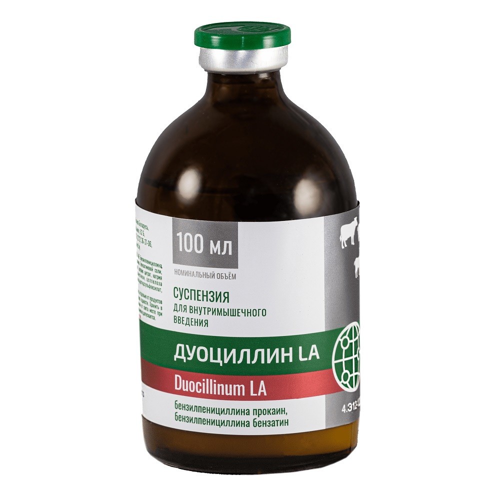 Дуоциллин LA (Duocillinum LA) – антибактериальный препарат, применяют крупному и мелкому рогатому скоту, свиньям, собакам и кошкам при заболеваниях, вызванных возбудителями чувствительными к
