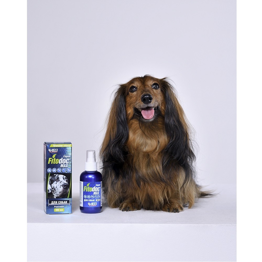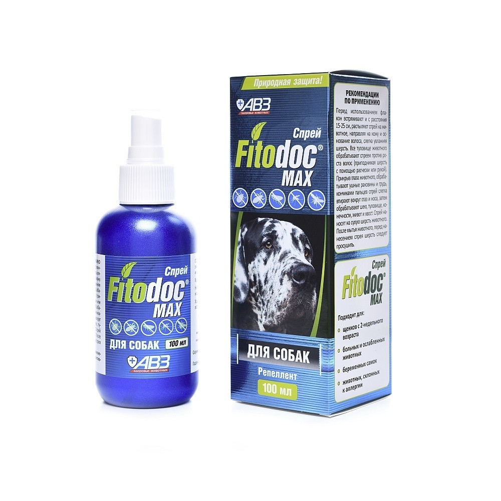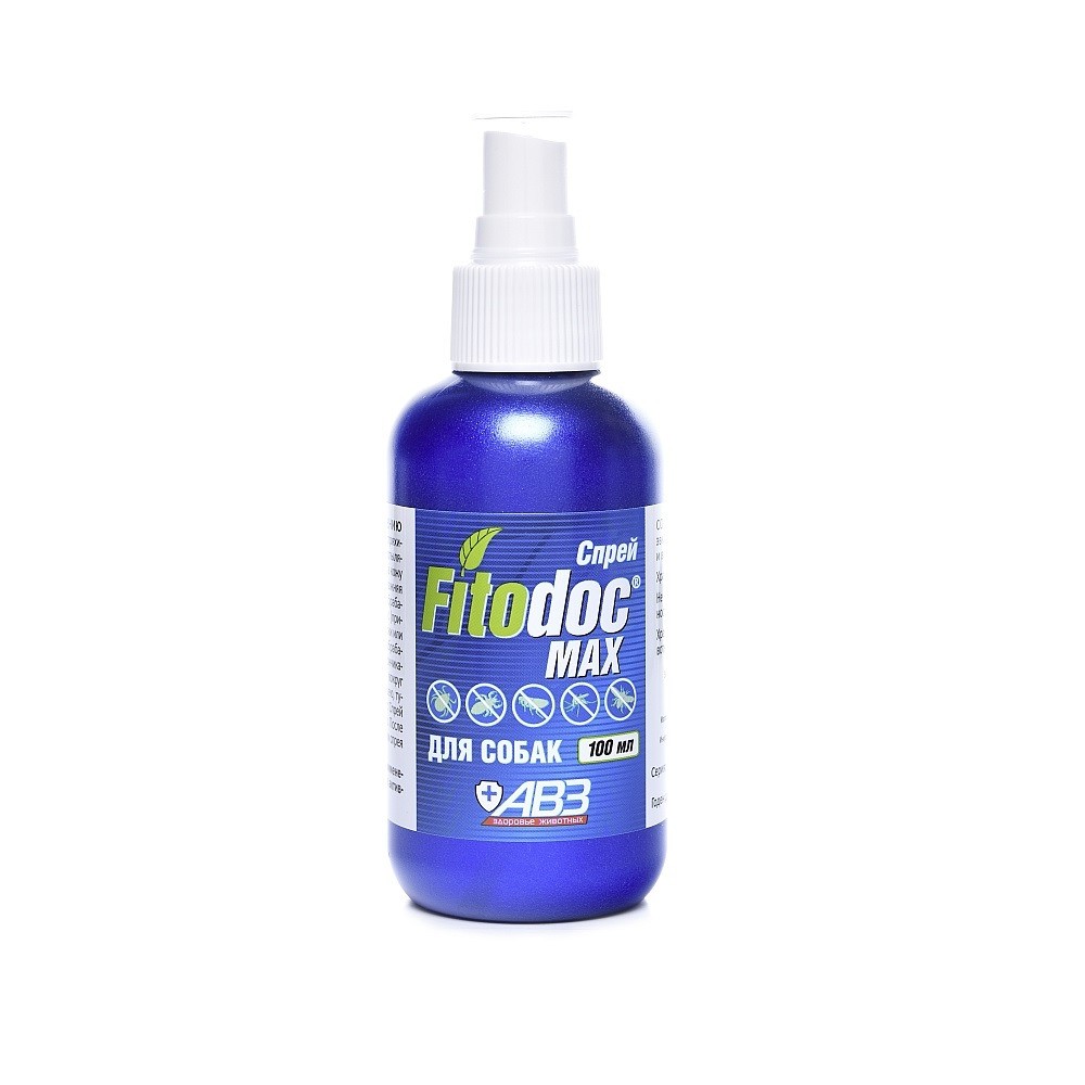 Спрей FITODOC® MAX применяют собакам для защиты от нападения блох, вшей, клещей, комаров и мошек.