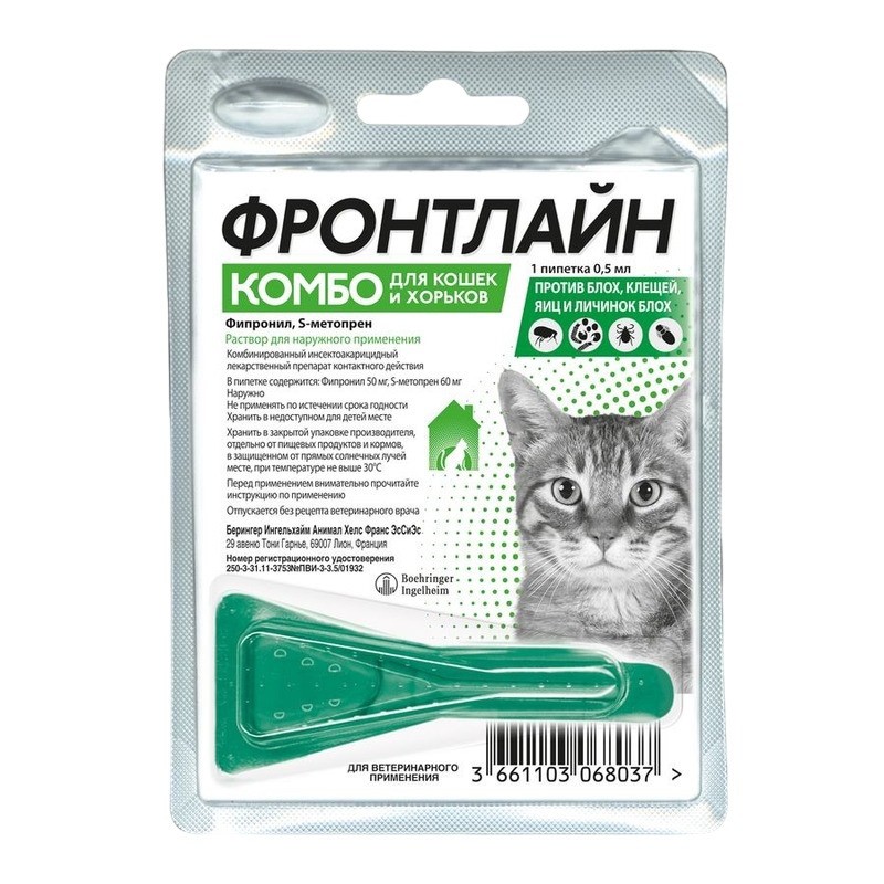 Запрещается применение Фронтлайн Комбо больным инфекционными болезнями и ослабленным животным, котятам моложе 8-недельного возраста, кошкам массой менее 1 кг, хорькам в возрасте менее 6 мес.
