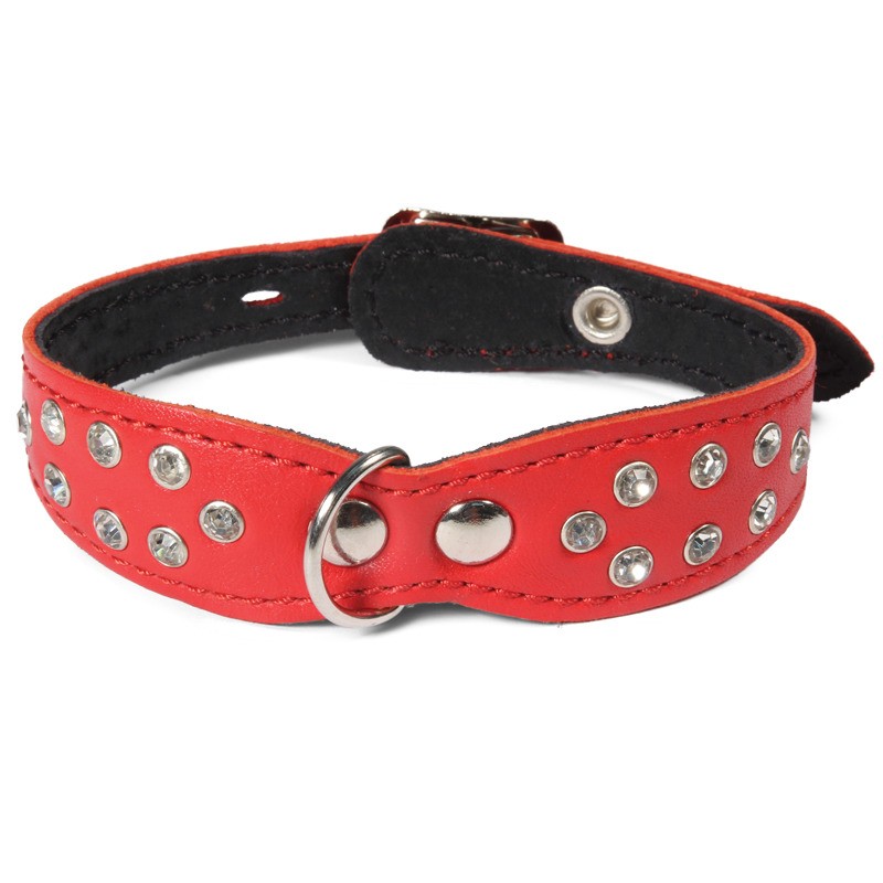 Двухслойное изделие со стразами выполнено из мягкой, но прочной цветной кожи высокого качества с использованием крепкой металлической фурнитуры.