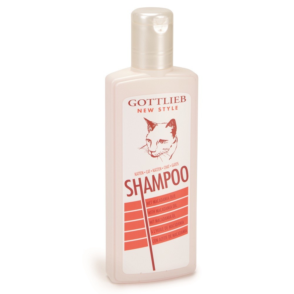 Gottlieb Cat Shampoo — шампунь с маслом макадамии для кошек всех пород. Масло способствует увлажнению шерсти, обеспечивает дополнительную поддержку для ухода за ломкими и сухими волосами и помогает