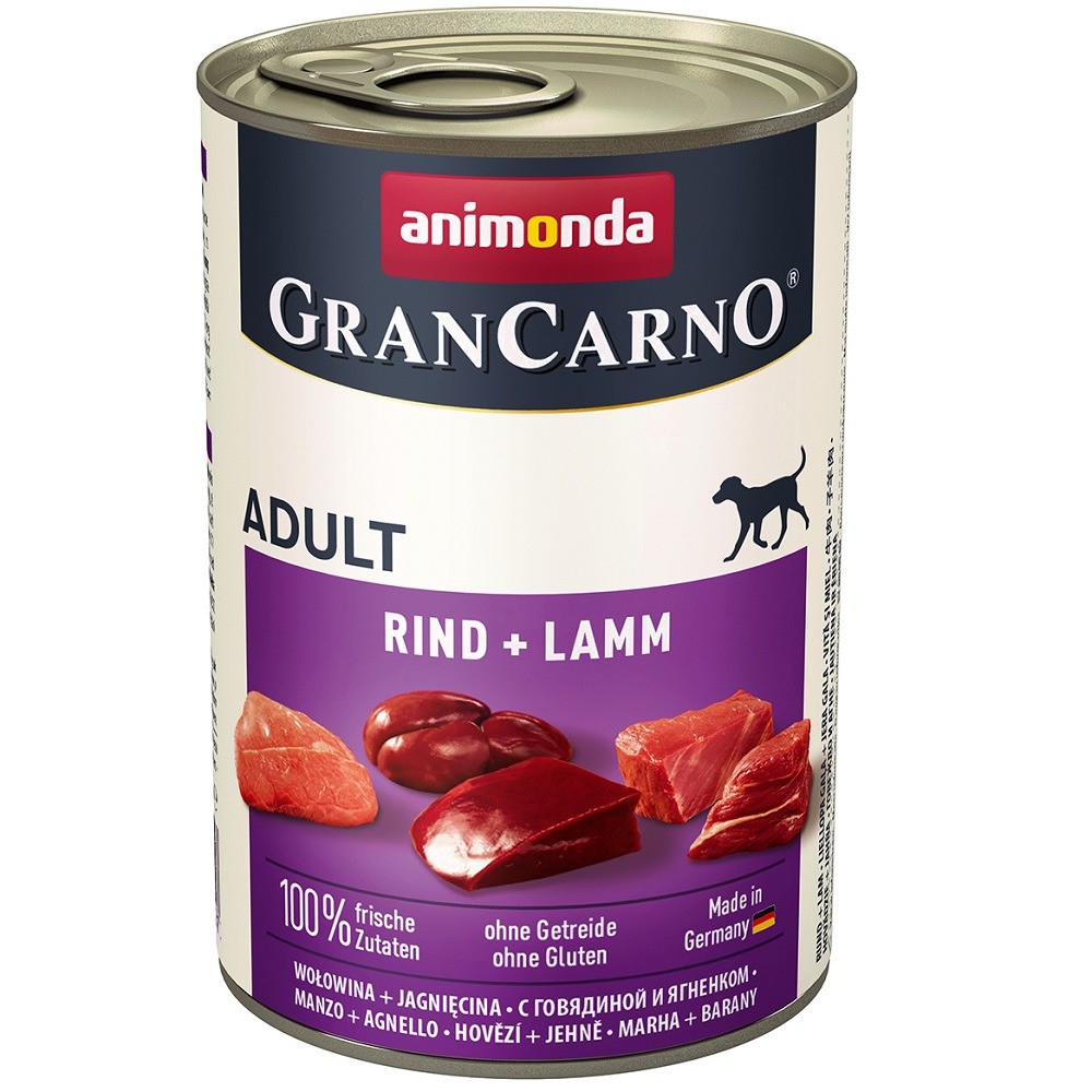 вашу собаку вкусными, свежими, мясистыми кусочками. GranCarno Adult Beef + Lamb обеспечивает лучшее питание для здоровья!