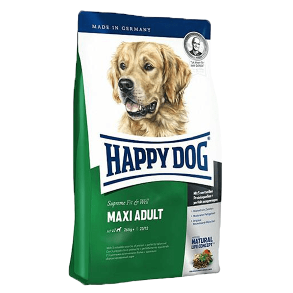 Happy Dog Maxi Adult Salmon & Lamb 23/13 — это полнорационный сухой корм с лососем и рыбой для взрослых собак крупных пород.