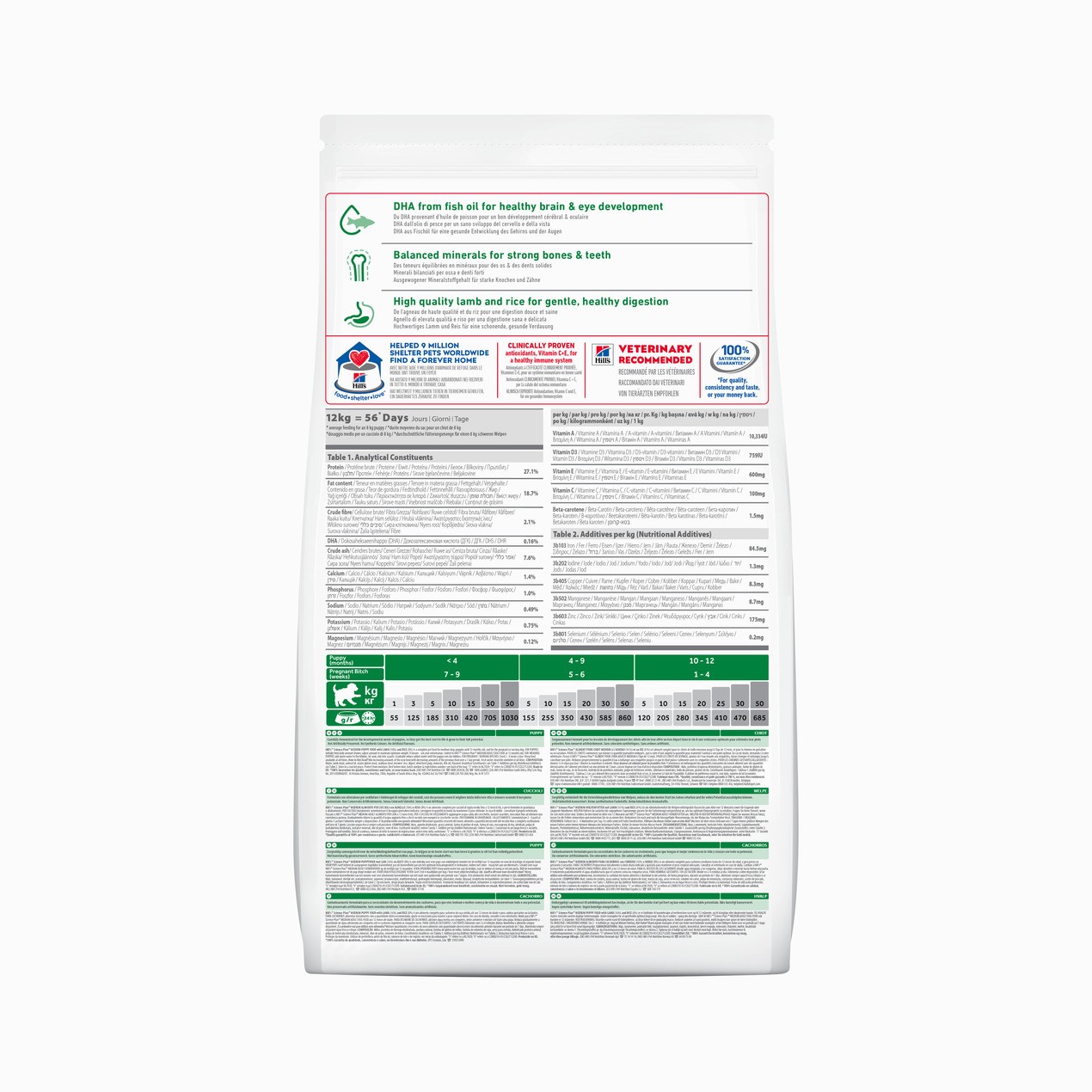Для кормящих сук: животное должно всегда иметь свободный доступ к еде. Переводите на корм Science Plan™ Advanced Fitness по достижении возраста 12 месяцев.