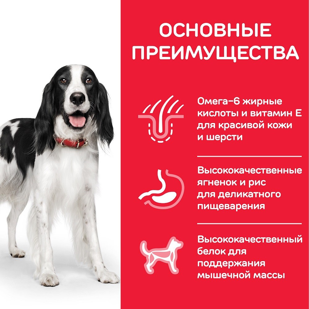 Hill’s Science Plan Medium Adult 1-6 —полнорационный корм с ягненком и рисом для взрослых собак средних пород в самом расцвете их жизни.