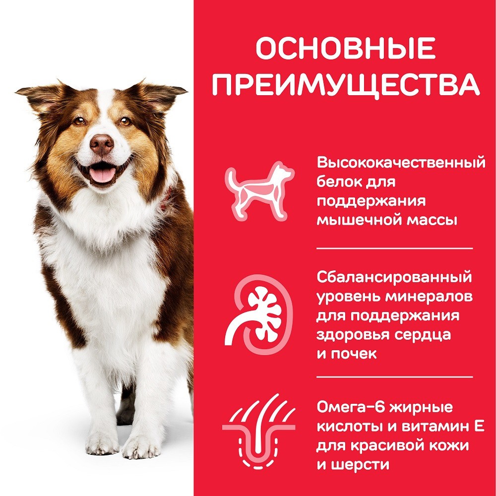 Hill’s Science Plan Mature Medium Adult 7+ — полнорационный сухой корм с курицей для поддержания иммунитета, здорового пищеварения и мышечной массы у пожилых собак средних пород.