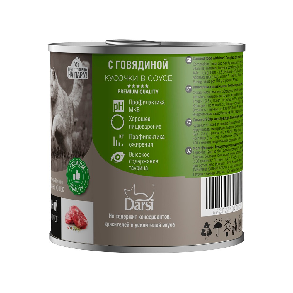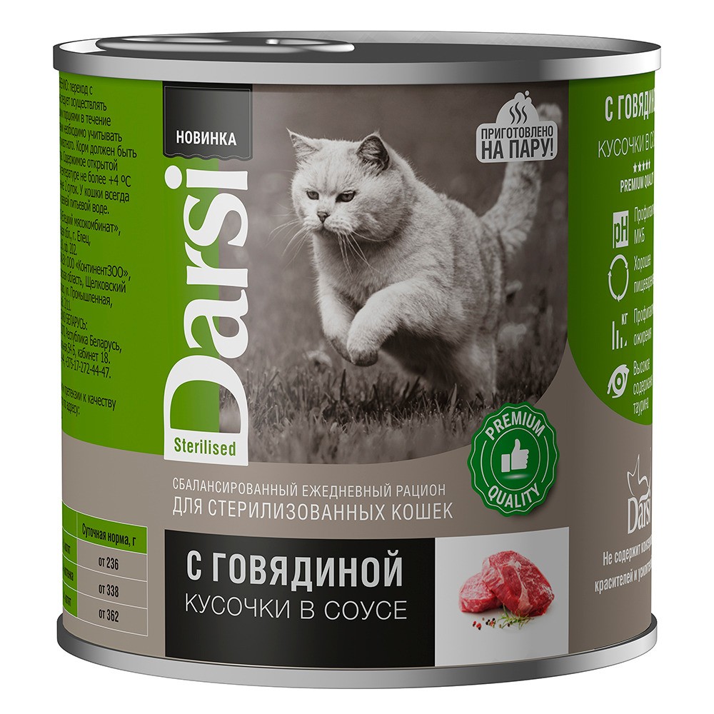 Darsi «Кусочки с говядиной в соусе» для стерилизованных кошек.