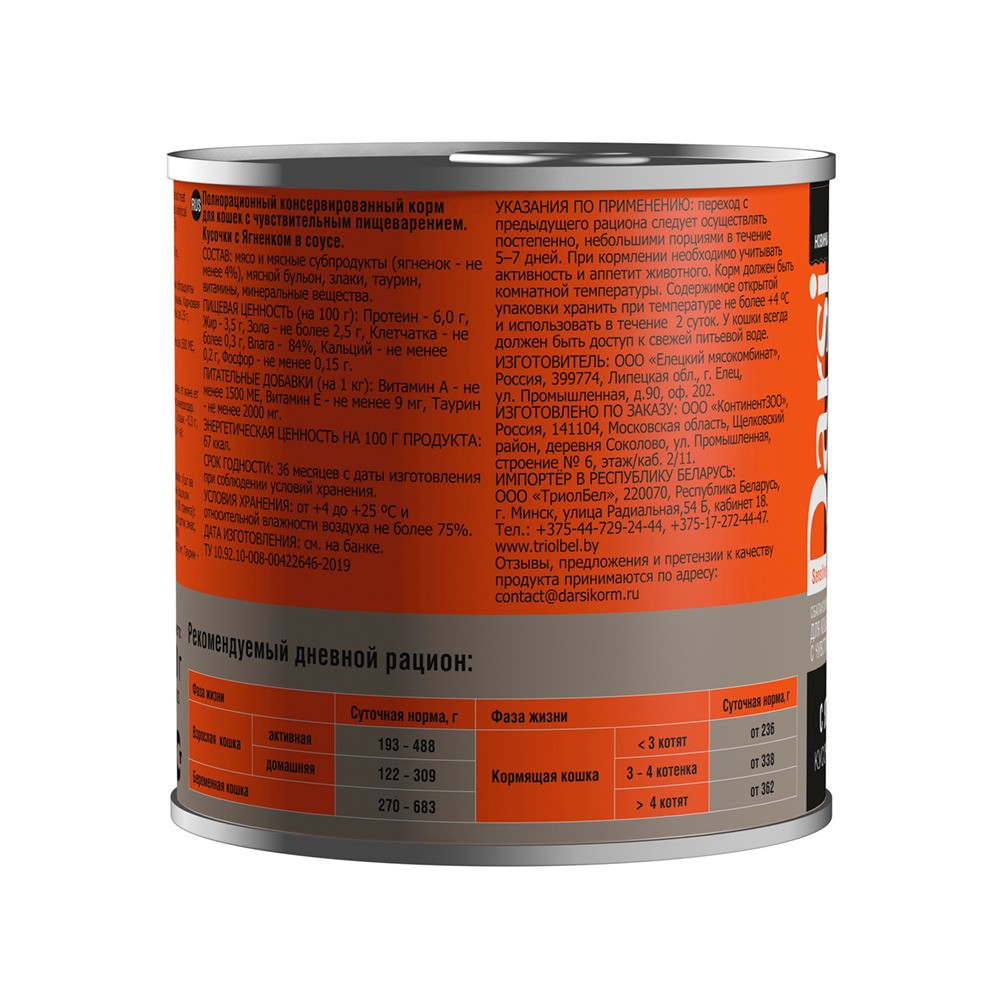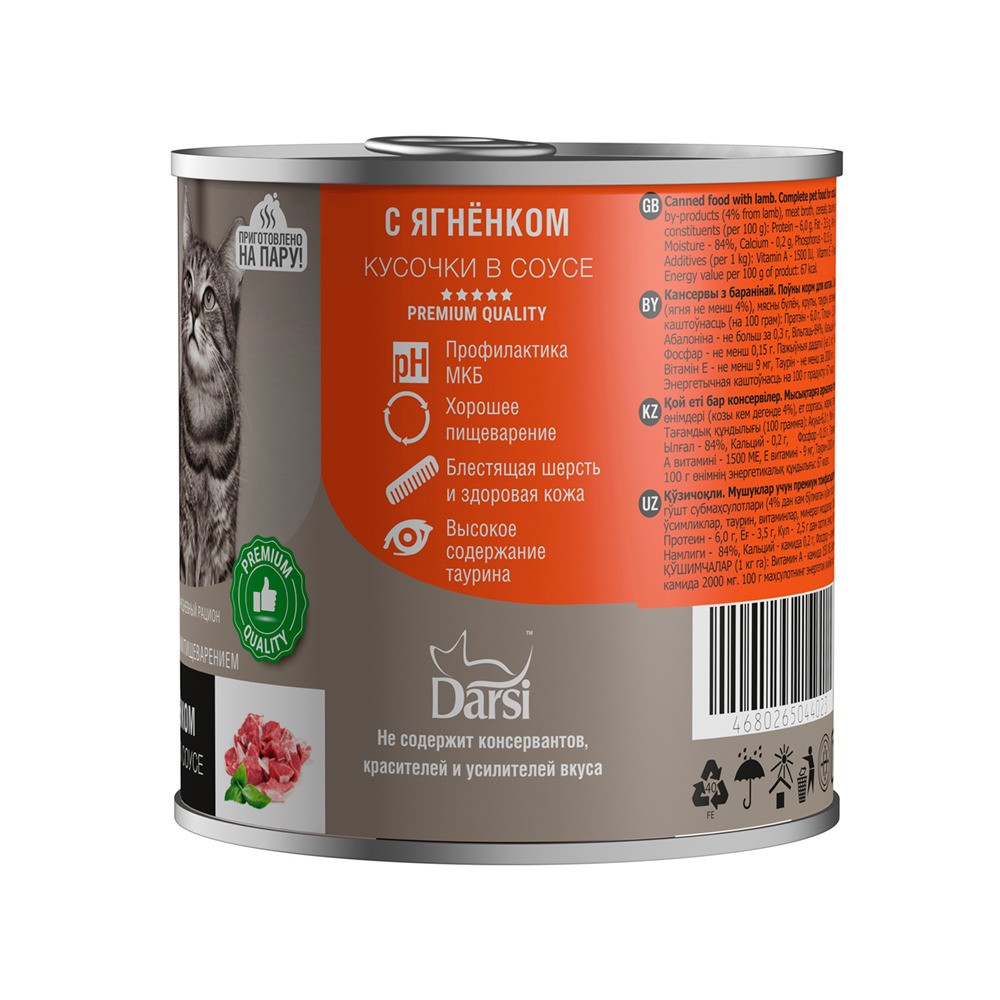 Darsi «Кусочки с ягненком в соусе» для кошек с чувствительным пищеварением.