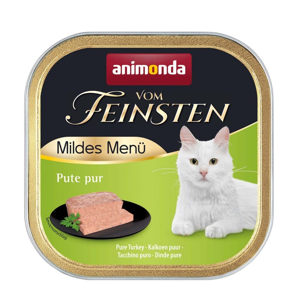 Vom Feinsten Adult Paté Mild Menu Pure Turkey (Анимонда Фом Файстен) — это хорошо сбалансированное, вкусное и полезное питание с индейкой для взрослых кошек в возрасте от 1 до 6