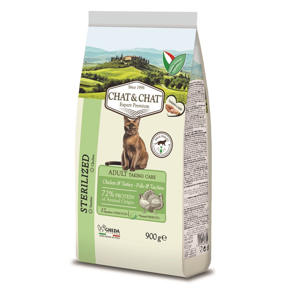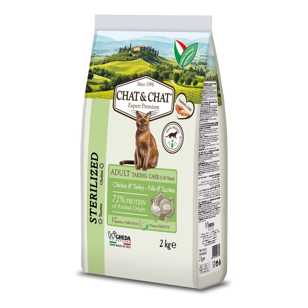 Chat&Chat Expert Adult Sterilized with White Meat Poulty — полнорационный сухой корм для взрослых стерилизованных кошек с белым мясом птицы.