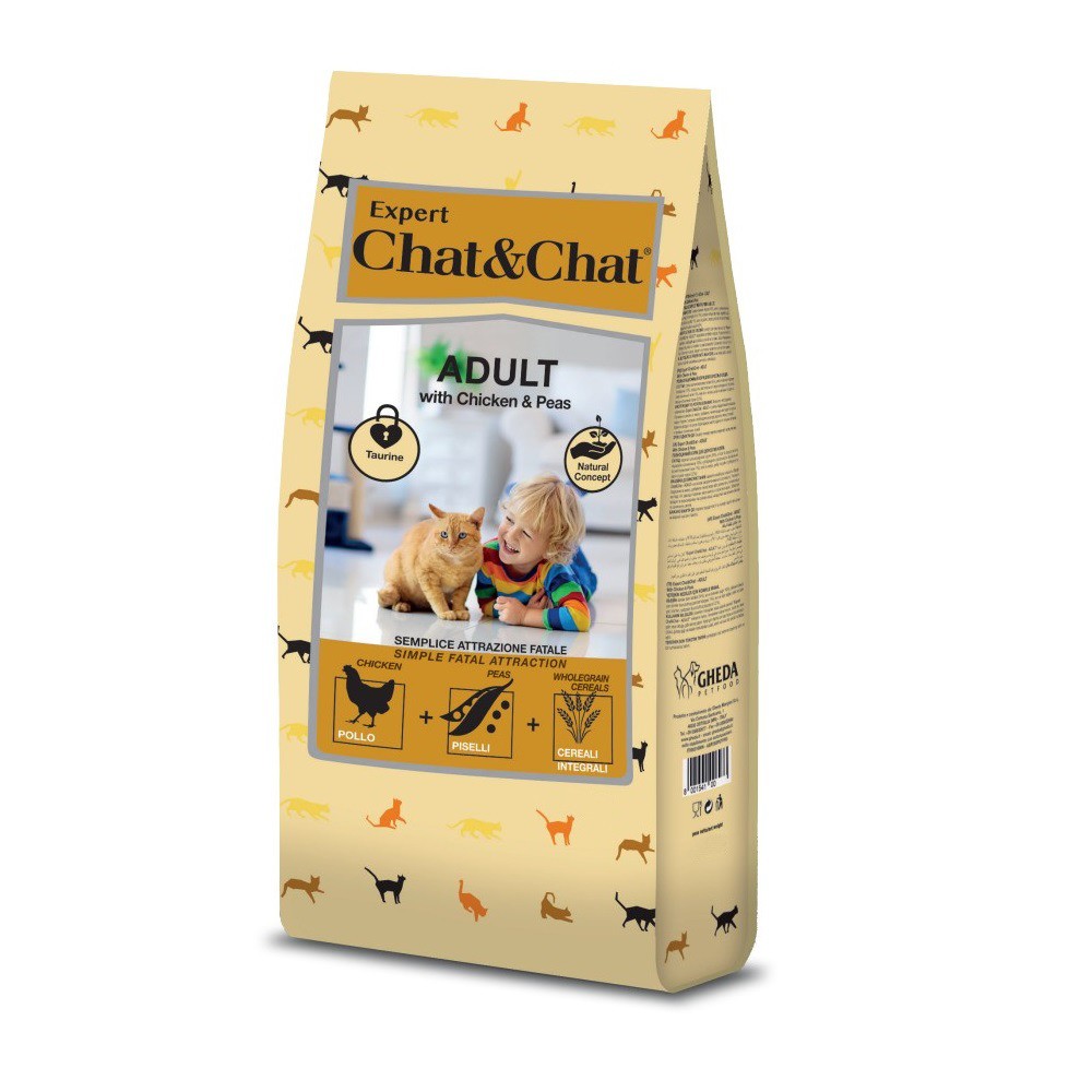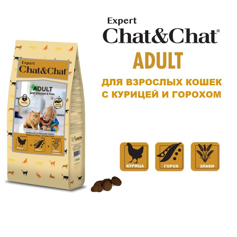Chat&Chat Expert Adult with Chicken & Peas — полнорационный сухой корм для взрослых кошек со вкусом курицы и гороха.