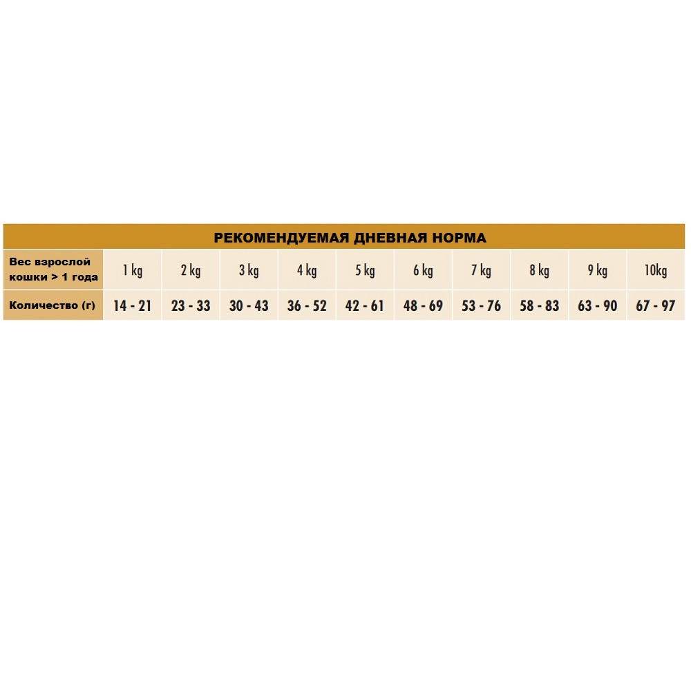 Белок 31,00 %; волокна 3,00 %; жиры 12,00 %; зола 9,50 %.