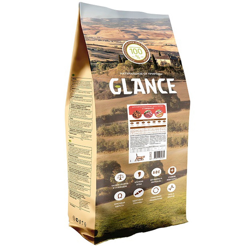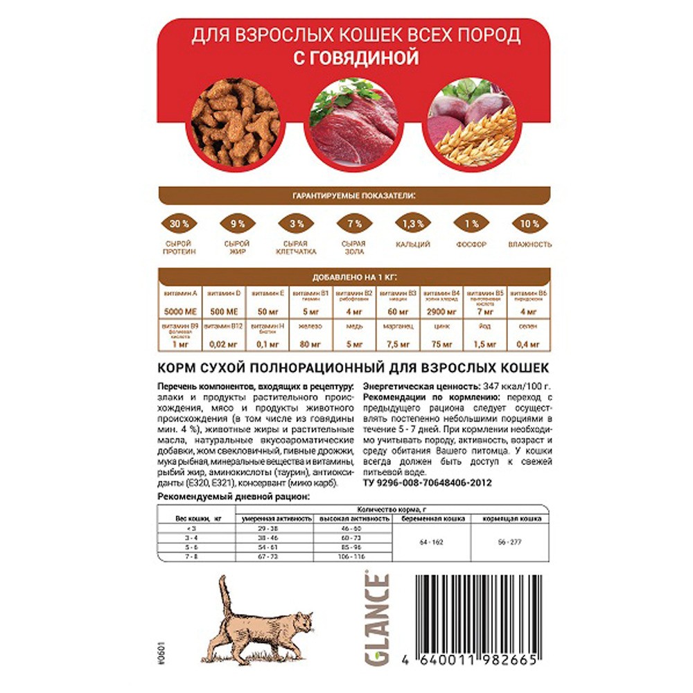 Glance с говядиной – полнорационный сухой корм для ежедневного кормления взрослых кошек любых пород.