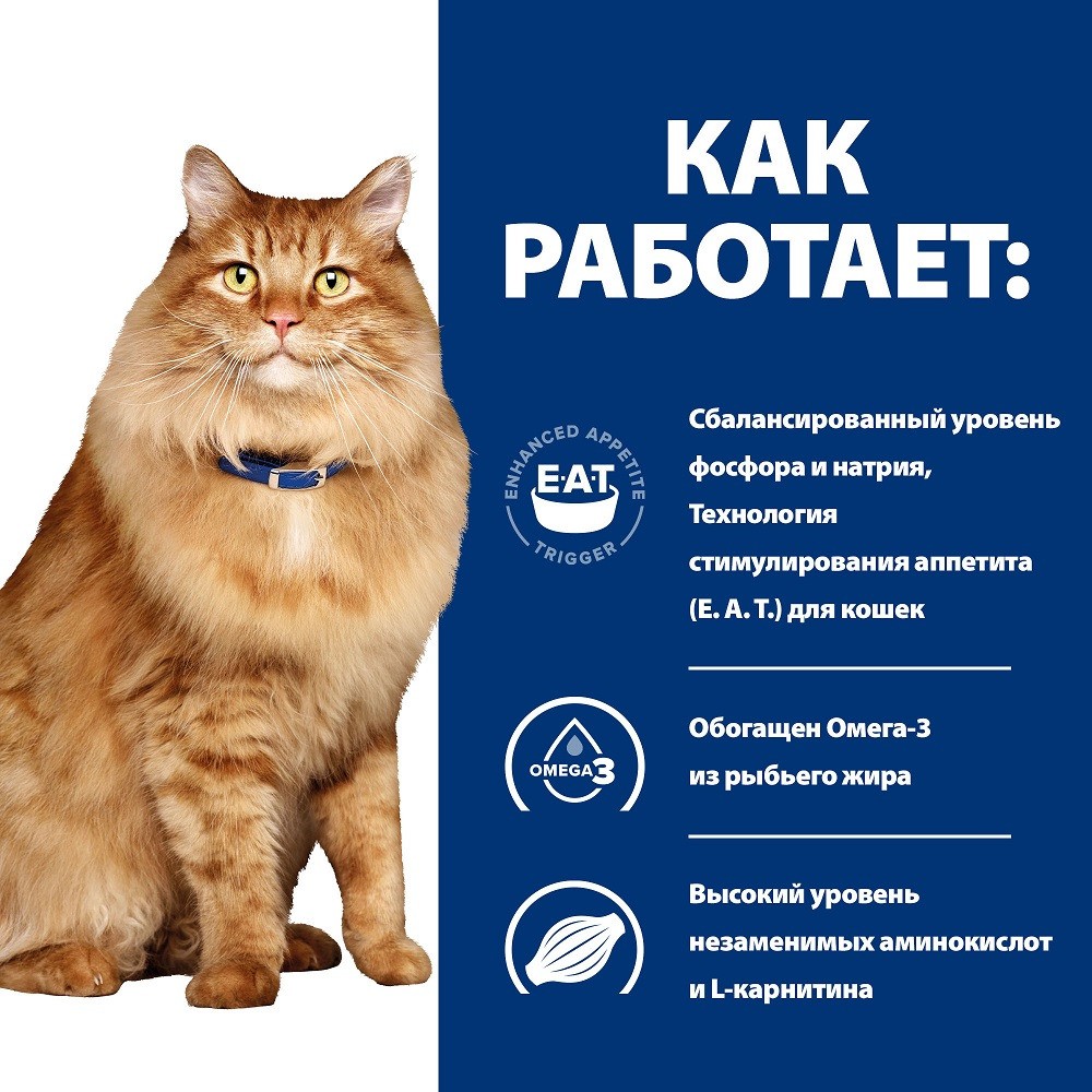 - Содержит контролируемый уровень фосфора и натрия, а также технологию восстановления аппетита (E.A.T.) для кошек