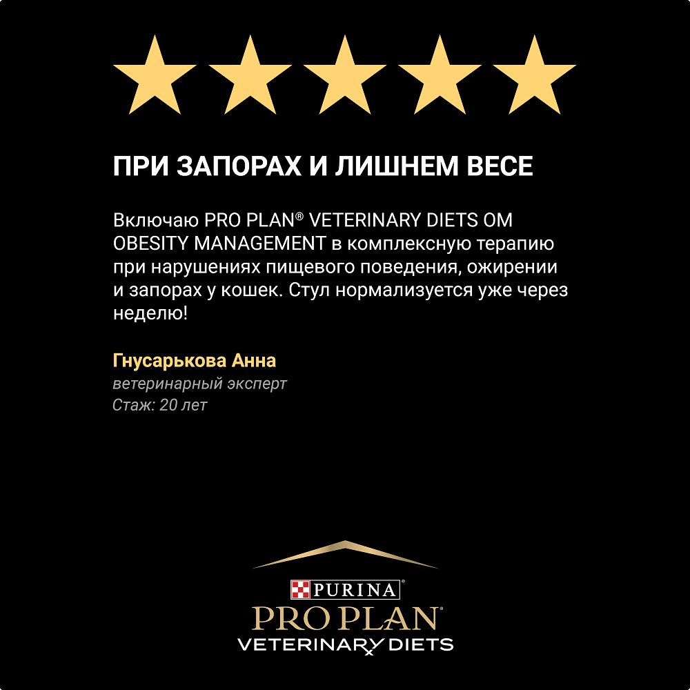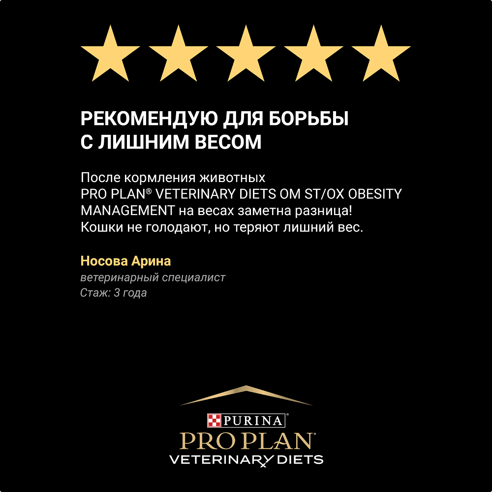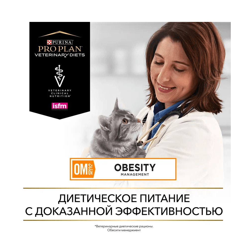 PRO PLAN® Veterinary Diets OM St/Ox Obesity Mangement (Обесити менеджмент) — полнорационный диетический сухой корм для взрослых кошек для снижения избыточной массы тела, с низкой