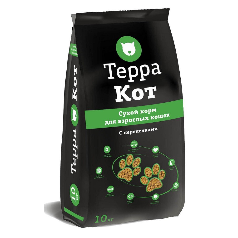 Корм «Терра Кот» — это сухой корм для взрослых кошек с перепелками.