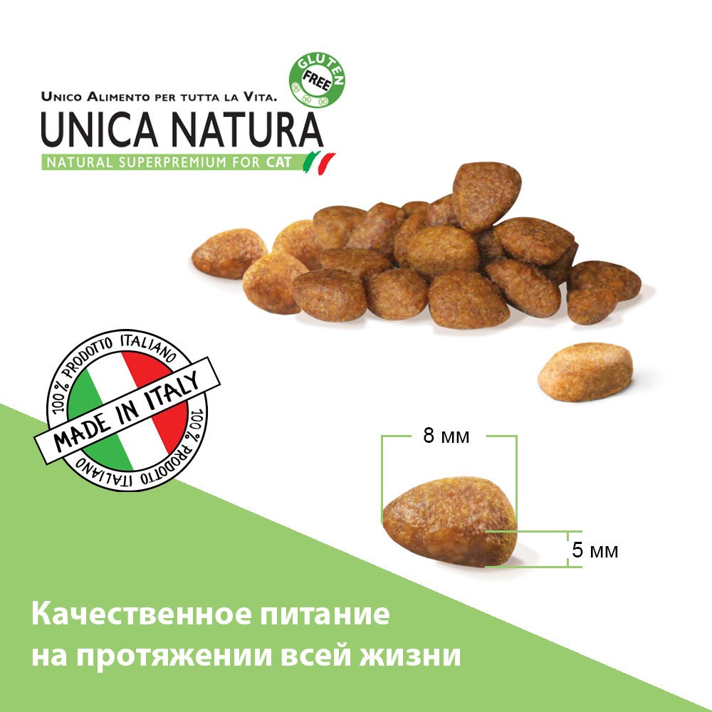 Италии. Линейка продукции Unica Natura использует уникальные продуктовые и вкусовые сочетания, которые привлекают кошек, не добавляя ароматизаторы и усилители вкуса.